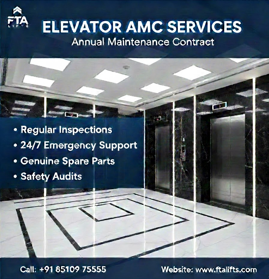 FTA Lifts offers professional Elevator AMC (Annual Maintenance Contract) services in Noida, designed to ensure the smooth, safe, and reliable operation of elevators in residential, commercial, and industrial buildings. With Noida rapidly growing as a hub of high-rise apartments, offices, hospitals, and commercial complexes, regular maintenance has become crucial to prevent unexpected breakdowns, reduce downtime, and extend the lifespan of elevators. FTA Lifts provides structured AMC plans that guarantee optimal performance throughout the year.