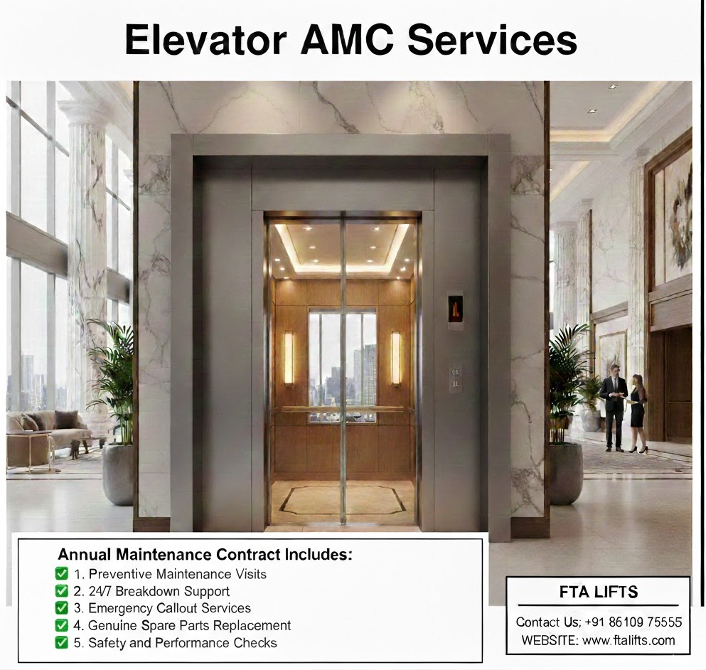 Elevator Annual Maintenance Contract (AMC) services by FTA Lifts are crafted to ensure that elevators remain safe, reliable, and efficient throughout their lifecycle. Elevators, whether in residential buildings, commercial offices, hospitals, or retail complexes, require consistent care to function properly due to daily usage and the stresses placed on mechanical and electrical components. FTA Lifts’ AMC services provide structured, preventive maintenance that helps avoid unexpected breakdowns and costly repairs by addressing small issues before they escalate.