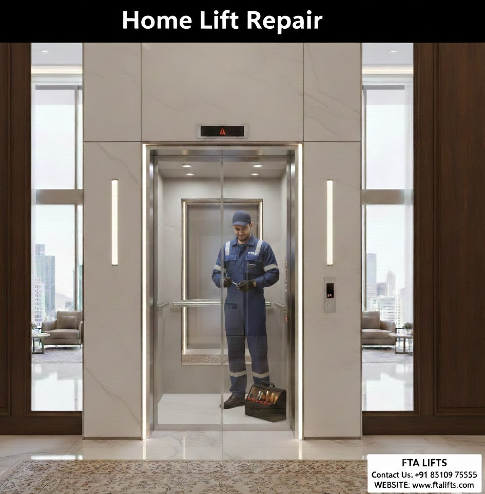 Home lift repair services by FTA Lifts are focused on maintaining the safety, reliability, and smooth performance of residential elevators. Home lifts are an important convenience for modern households, and any malfunction can disrupt daily life. FTA Lifts provides professional repair solutions for a wide range of issues, including mechanical wear and tear, electrical faults, control panel errors, door alignment problems, and abnormal lift movements, ensuring that the system operates efficiently and safely.